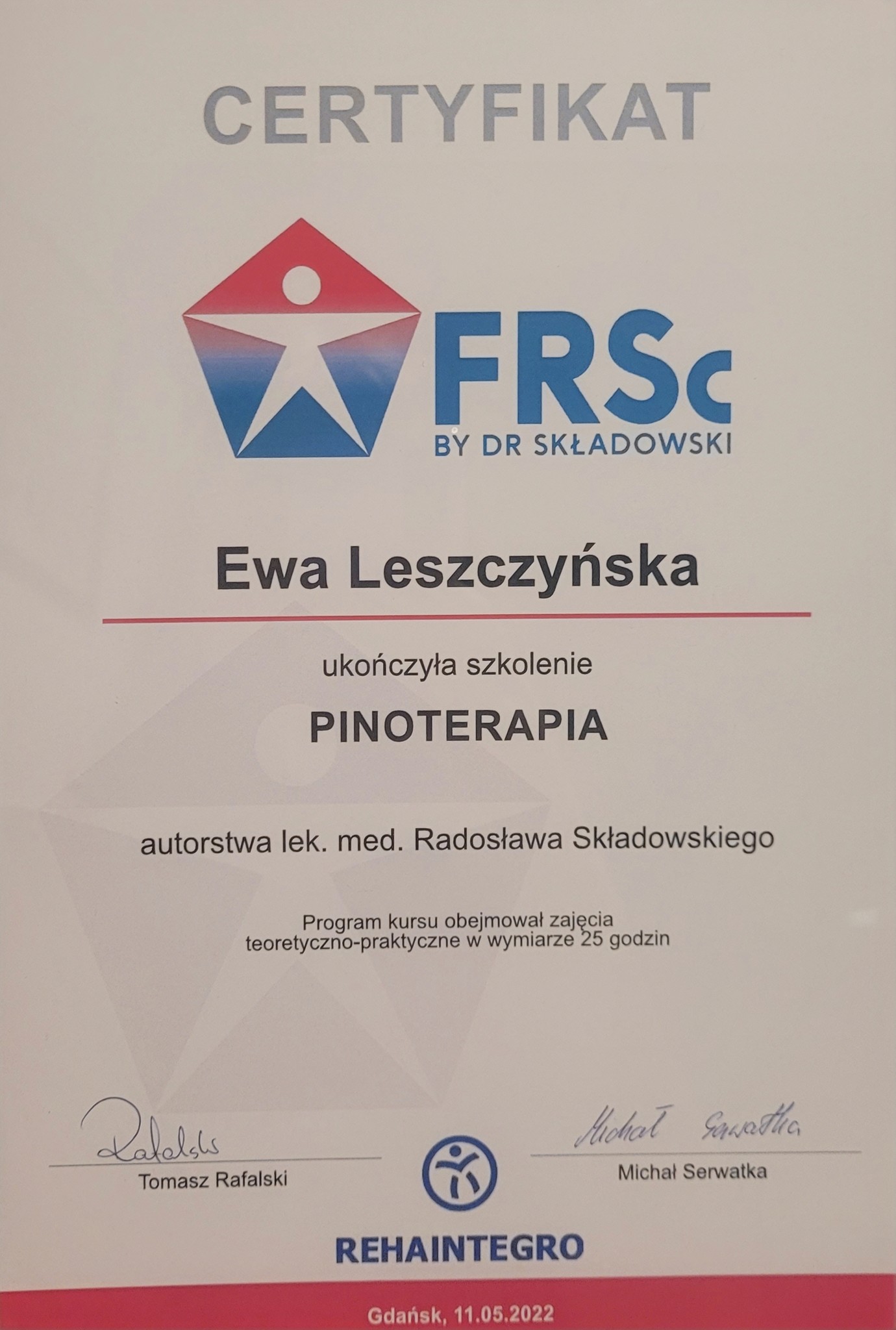 Pinoterapia autorstwa lek. med. Radosława Składowskiego. Zajęcia teoretyczno-praktyczne w wymiarze 25 godzin.